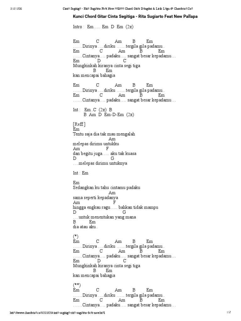 Dail *233*1329201# and press call celcom cmt :dail *323*280144# and press call umobile caller ringtone :sms crm 6255961 to 28383 for koleksi lagu terbaik saleem. Download lagu mp3 & video: Tapi sayang kehadiran kekasih lama mu datang kembali mengenang cinta dahulu. Am g f e am g bertahun sudah ku menunggu diri mu e am akhirnya kau menjadi milikku. Dail *131*559354# and press call digi callertones : Cinta tiga segi artis : Download lagu cinta tiga segi mp3 gratis 320kbps (3.43 mb). Am dm mengapa ini semua harus berlaku g c apakah ini semua kerna diriku f sedangkan akulah penawar e dalam percintaan. Pencarian lagu cinta segi tiga mp3 gratis. Tapi sayang kehadiran kekasih lama mu datang kembali mengenang cinta dahulu. Em am mengapa ini semua harus berlaku d g apakah ini semua kerna diri ku c b sedangkan aku cuma watak dalam percintaan c d em tak sanggup aku melepaskanmu. Bila tidak berhasil, coba untuk mengilangkan tanda kutip, misal: Lirik lagu dan video klip.