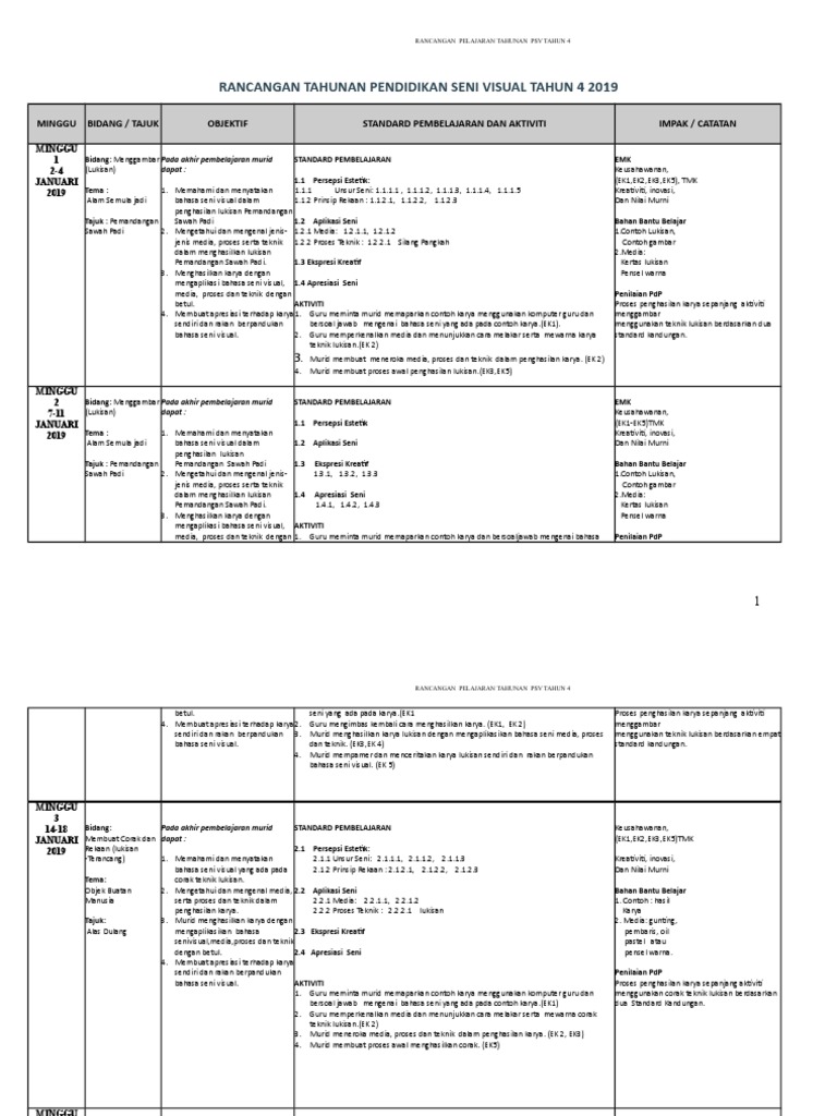 Muat Turun Dskp Pendidikan Seni Visual Tahun 4 Yang Bermanfaat Khas Untuk Para Guru Perolehi Pendidikan Abad Ke 21 from menulismenconteng.my Rpt psv tahun 4 kssr. Dskp tahun 4 merupakan yang terbaru bermula tahun 2020 dan rpt dokumen penjajaran kurikulum bagi tahun 2020. Sekolah kebangsaan desa pandanjalan 4/76, desa pandan, 55100 kuala lumpurrancangan pengajaran tahunanmatematikkssr tahun 4 2019disediakan. Apakah rpt 2020 sekolah rendah dan rpt sekolah menengah. Download lagu rph psv tahun 4 11.17mb dan streaming kumpulan lagu rph psv tahun 4 11.17mb mp3 terbaru di metrolagu dan nikmati, video klip rph psv hasil diatas adalah hasil pencarian dari anda rph psv tahun 4 mp3 dan menurut kami yang paling cocok adalah rph psv tahun 4. Jangan lupa share dan subscribe channel youtube cikgu jumrah untuk membantu saya meningkatkan semangat menghasilkan idea yang menarik dan kreatif dalam mendepani dunia. Rancangan tahunan pendidikan seni visual tahun 4 ( semester perama ) minggu bidang / tajuk hasil pembelajaran objektif catatan 1 menggambar tajuk : Download / muat turun rancangan pengajaran tahunan (rpt) kssr 2020 semua matapelajaran sekolah rendah.
